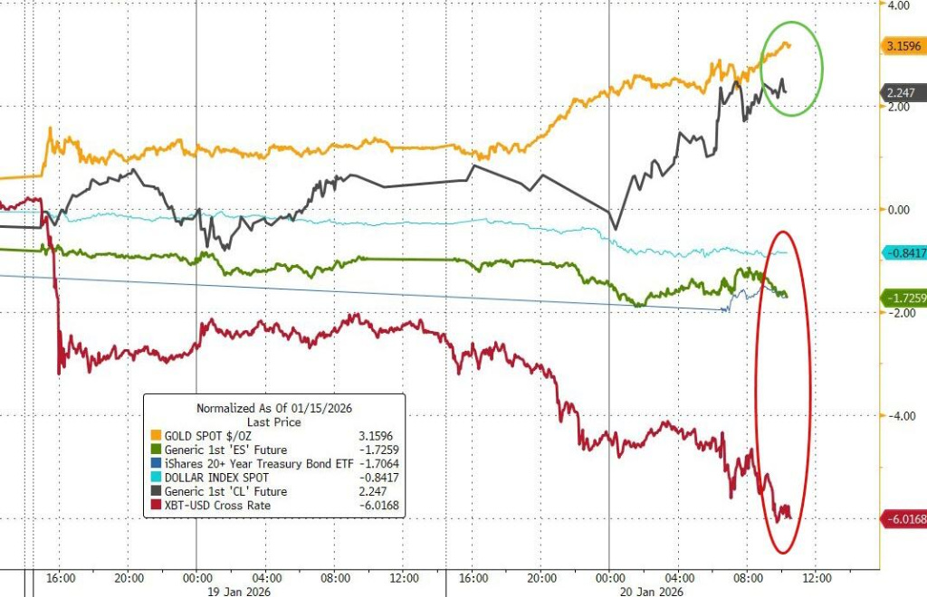 随着懂王强取格陵兰岛的野心暴露,黄金和白银各自突破5000和100美元高点,而美元信用在其长期盟友中出现裂痕,以黄金计价的美元、美债和美股其实都出现了巨大的价值垮塌。无巧不成书,美国在亚洲的马甲日本,在重新进行国会选举后,出现了长债利率飙升(被投资者抛售)的情形。而日债利率的飙升,也导致美债收益率出现上升,因此也引发了贝森特开始为日本托底的言论。过去一年美元指数已经下跌了近10%,而如果用黄金计价的话,美元的购买力在一年内下跌了近47%!美元过去是叫“美金”,而现在美元从未如此与贵金属,乃至是现实价值等价物脱钩得如此严重。