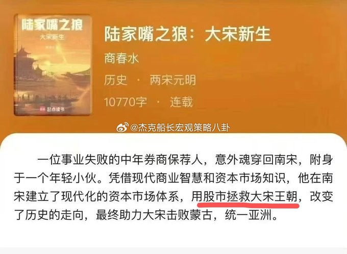 笔者近期看到有金融从业人士写《陆家嘴之狼:大宋新生》,不由感慨,权开此新系列,挖个新坑看看大家是否抬爱。若有死忠粉强烈要求更新的,我便更新:)